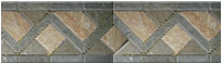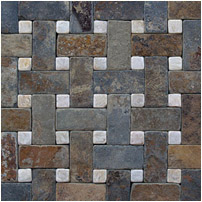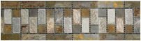 Pietra naturale (ardesie, quarzo, lavagna) lavorate a mosaico ed incollate su rete con spessore totale di 1 cm. Alla collezione si aggiungono i decori che andranno ad impreziosire ed incorniciare le vostre pareti. Le pietre naturali sono adatte sia alle applicazioni di interni (bagni e rivestimenti) che di esterni. Il nostro studio di progettazione è in grado di personalizzare il mosaico con tessere e formati a richiesta. |