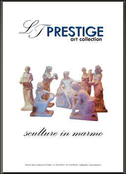 L'arte scultorea da secoli impreziosisce e nobilita i nostri spazi domestici ed urbani. La collezione Prestige art collection propone articoli raffinati, pezzi unici e preziosi scolpiti a mano da maestri scalpellini nel pieno rispetto dell'antica maestria scultorea. Tutte le opere d'arte sono adattabili alle Vostre esigenze, riproducibili in varie misure e tipologie di marmo anche su vostro progetto esclusivo. Il marmo non smette mai di unire classe e lusso in un connubio dal valore inestimabile. Oltre alle statue, tra le pagine del catalogo vengono proposti camini, animali, vasi, fontane, lavabi, tavoli, panche e busti dal design classico. |