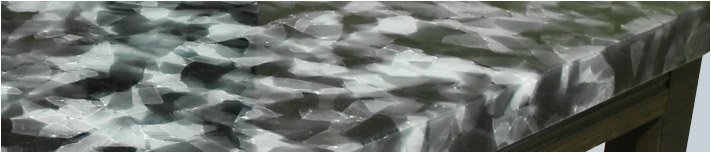 trasparenza, durezza e resistenza agli agenti atmosferici e chimici. La collezione si divide in Onyx, Crazyglass e Pure White. |